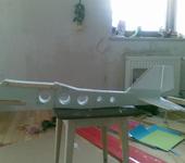 Конструкцию взял практически “из головы”, пропорции и размеры примерно соответствуют Трикону. Размах 900мм, длина фюзеляжа - 700мм. Профиль взял от Simplex-а, чуть увеличив (длина 180мм вместе с элероном, высота 27мм).