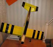 Спасибо что оценили! Из чертежей есть только то, что выложено в первом посте. Профиль взял от Simplex-а (посмотрите в ангаре у Concord-a, тут на сайте), могу только отсканировать жестянку- шаблон, если нужно. Вполне научился летать на этом аппарате, он прекрасно крутит бочки, петли получаются вялые, особенно обратная, но это думаю можно поправить, увеличив плечо на качалках. Аппаратура у меня простая - WFLY-06 с механическими триммерами, без настраиваемых микшеров (только стандартные), а желательно делать микс газа с РВ, при полном газу модель тащит вверх. Окраска получилась удачная, хорошо различается верх и низ на большом расстоянии. Моделька весьма крепкая, сколько морковок выдержала, винтов попереломал штук пять. Не очень красиво выглядят тяги снаружи и создают дополнительное сопротивление, но для тренера скорость и внешний вид не главное. Главную задачу ставил перед собой - сделать простую модель, чтобы просто было сделать, была крепкая, но достаточно легкая. Из потолочки клеить сложнее, когда делал облегченное крыло для Трикона (вырезал из цельного куска розового пенопласта, облагчил, потом обтягавал разрезанной потолокой - выигрыш был небольшой), поэтому решил, что из цельного куска резать проще, быстрее, без особого утяжеления.