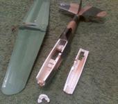 Заклеил фюз, срезал верх, получилась крышка. Вклеил мотораму из 2мм фанерки, вдоль фюза - бальзовые стрингеры 4х4. На крыльях прорезал элероны, приклеил на скотч, врезал машинку 5гр. РН зафиксирую, на РВ тоже будет HXT500 5гр, Приемник WFly 6 кан. (думаю надо корпус с него снять, а может и не буду). Моторчик будет Дуалскай XM2812 1700kv 18гр (тяжеловат, но другого нет), рег.25А (тоже великоват, но легче нет в наличии). Акк - 600mA 2S - 36гр (те же яйца). По итогу масса должна получиться 150-160 гр (из них 100 гр начинка) и нагрузка 40гр…