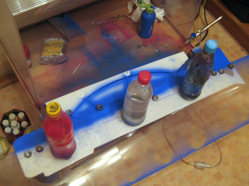 - краску надо профильтровать, у меня аэрограф с очень маленьким соплом, ничего не закакивается питерской краской (кроме белой), но и краску долго не держу