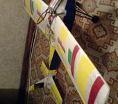 Доброго времени суток всем) Досталась мне модель с кружка от нашего руководителя и тут же с его помощью сделал свой первый электролет) На окраску не обращайте внимания) Эта моя первая, радиоуправляемая модель, на которой я совершил свой первый удачный полет) Двигатель DualSky XM 2812/27 c винтом 7х4, полимер емкостью 1000 мА, тяга-240 грамм) Вес модели 206 грамм) Очень легкая в управлении)