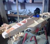 Крыло сделано из Пеноплекса 20мм, ближе к корню утолщение до 60мм(3 слоя) чтоб спрятать колеса и немного спрофилировано.