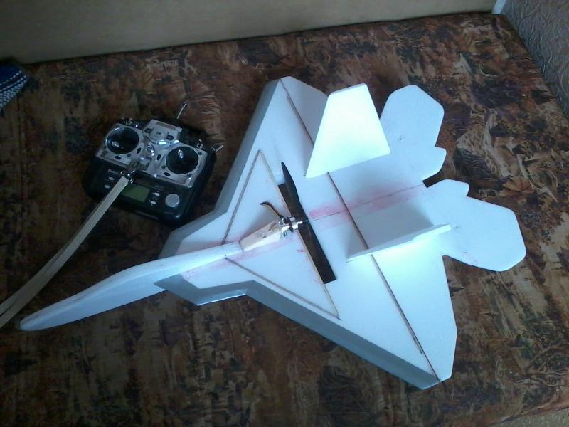 александр кохтырев,вы меня вдохновили…решил я тоже сваять раптора для буджетного боя(вот только кто из наших авиамоделистов поддержит эту идею?,хотя…может быть также зажжёт,как меня).решил сделать размахом в 24 дюйма из двух слоёв 4мм потолочки,крыло усилил сосновой реечкой а в фюзеляж воткнул линейку.кинул самолётку(в таком виде) и удивился…планирует абалденно…в итоге центр тяжести получился посередине выреза под винт,и сразу возник вопрос какой выкос двигателя(градусы) и куда сделать(просто с толкающим делаю первый раз),ну и подскажите как улучшить конструкцию