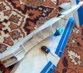 клеится намертво к фюзу, ибо из-за неудачного расположения сервы в крыле - минус шпангоут и дыры в фюзе под тяги посему рисковать жесткостью фюза не стал и усилил его крылом)))).