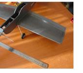 Теперь про линейки. Нет, она не в дюймах, и размах получился 60 см. А вот от куда такой вес взялся - я не в курсе дела. Крыло сделал и 3 мм депрона, внутри (для придания объёма и прочности угольная трубка диаметром 15 мм). Фюзеляж из 6 мм депрона. Начинка состоит из мотора (о котором я писал выше), регулятор 35А (no name), одна мини серво (9г) и две микро (5г), приёмник Spektrum AR6100, стойка для шасси из велосипедной спицы 2 мм (6г), колёса специально купил лёгкие в “Пилотаже”, винт правда не самый лёгкий (13г!!!) (и наверное не для подобных моделей), но какой был под рукой, клей “Титан”, клеевой пистолет, немного скотча - вот собственно и всё, из всего этого добра и набежало…