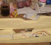 На большем ничего не выбирал. Схемку как распологал детали выкладывал выше (материал - утеплитель толщиной 20мм). После склейки “обработал напильником”, т.е. снаружи придал подобие фюзеляжа.