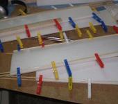 - Консоли крыльев - лонжерон, кажется три слоя потолочки с 3-мм угольком-трубкой посредине /что было под рукой/ и обшивка из потолочки, приклеены к как-бы центроплану из пены.