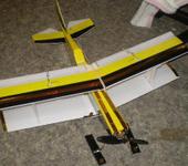 - Консоли крыльев - лонжерон, кажется три слоя потолочки с 3-мм угольком-трубкой посредине /что было под рукой/ и обшивка из потолочки, приклеены к как-бы центроплану из пены.