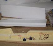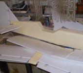 На большем ничего не выбирал. Схемку как распологал детали выкладывал выше (материал - утеплитель толщиной 20мм). После склейки “обработал напильником”, т.е. снаружи придал подобие фюзеляжа.