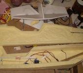 - Консоли крыльев - лонжерон, кажется три слоя потолочки с 3-мм угольком-трубкой посредине /что было под рукой/ и обшивка из потолочки, приклеены к как-бы центроплану из пены.