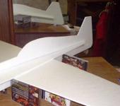 Уху-пор есть, делать площадку из фанерки пока не из чего - фанерки нет. Сделал самолетик из изополина (кажется так), консоли из потолочки с усилением из деревянных тонких прутиков.