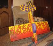 Очень красивое готическое пламя! Представляю себе, как она летает при таком весе и площади, наверное, около 25 дм2. Маленькая нагрузка, толстый профиль, прямоугольное крыло - небыстро, ровно и предсказуемо…