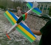 Тоже сегодня облетал свою. 😃 На поле был не один, поэтому решил доверить первый полет профессионалу. Он облетнул, оттримировал. Сказал, что прикольный самолет. Наша Екатеринбуржская авиамодельная тусовка слойку оценила высоко. 😃