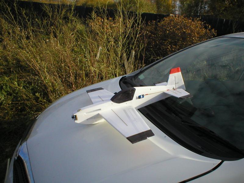Частично обклеенная скотчем, с заплатками и кучей клея уже, вес 220-230 граммов, летает отлично, особенно лучше стала летать после того, как я шасси выкинул, вес чуть чуть уменьшился, и видимо центровка сместилась чуть назад, висеть стало легче, на ноже уводить перестало. В принципе, если увеличивать площадь только за счет элеронов, то хуже не будет, должна увеличиться управляемость на 3D. А то сейчас чувствую, при зависании и добавлении тяги иногда элероны отклонены на полную, а слойку разворачивает по крену влево.