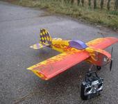Очень красивое готическое пламя! Представляю себе, как она летает при таком весе и площади, наверное, около 25 дм2. Маленькая нагрузка, толстый профиль, прямоугольное крыло - небыстро, ровно и предсказуемо…