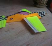 Ну, вот и я завершил постройку данного агрегата. Сразу скажу, делал все на скорую руку, клея лил от души. Из начинки поставил то, что было свободно, а именно: двиг Pilotage 2205, регуль Jeti 7A, акк. 3S на 730mAh, элероны digital e-sky (маркировку, к сожалению, не помню), на рудер и элеватор пилотажевские С-01СТ, приемник spektrum AR6200, винтик 8х4 GWS’овский. Итого, уместился в 200гр полетного веса. Раскрашивать пока не стал, посмотрим, как полетит, все-таки пробная версия. В дальнейшем покрашу и обтяну скотчем… Или просто обтяну цветным скотчем.