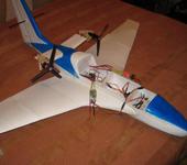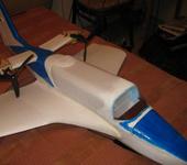 А у меня какая то черная полоса пошла:(. Кабину поборол, у одного мотора магнит отклеился, поменял мотор, поставил винты - 0,5мм цепляют крыло. Надо ломать моторамы и поднимать выше. У Юргена угол пилонов больше намного. Попробовал покрасить аквалаком с красителем - совсем не укрывистая краска получилась, зато блестит…