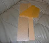 - Нарезал пенопласт на импровизированном столе листами 10мм толщиной. Толщину реза регулировал с помощью 2-х батареек формата ААА подложенных под проволоку.