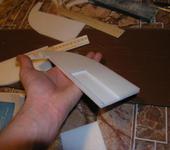 Вырезал хвостовое оперение. По передней кромке стабилизатора приклеил усилитель из бальзы.