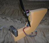 Установил серву на руль поворота. Вклеивать очень не хотелось, да и ремонтопригодность в полевых условиях стоит на первом месте. Закрепил ее при помощи пластиковых стяжек. С обратной стороны подложил подкладку из ПЭТ бутылки, дабы не продавливать пенопласт. А чтобы стяжки и сама серва не скользили, обмотал ее лейкопластырем.
