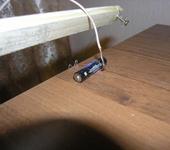 - Нарезал пенопласт на импровизированном столе листами 10мм толщиной. Толщину реза регулировал с помощью 2-х батареек формата ААА подложенных под проволоку.