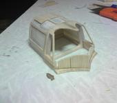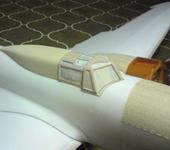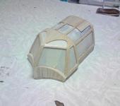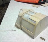 Работаю над кабиной. Изначально был сделан болван. Но результат усадки пластиковой бутылки на болван не порадовал. Решил делать по другому и вот что пока получается. Остекление делаю так же из бутылки. До покраски заклеены скотчем.