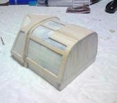 Работаю над кабиной. Изначально был сделан болван. Но результат усадки пластиковой бутылки на болван не порадовал. Решил делать по другому и вот что пока получается. Остекление делаю так же из бутылки. До покраски заклеены скотчем.