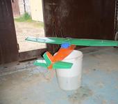 Сделал самолет. Размах 1,45. Облетал. Все замечательно. Поскольку это мой первый самолет и первый опыт в самолетостроении, то не стал делать переднюю стойку. Поставил сзади. Но никак не могу придумать надежное управление ею. Фото выкладываю - может будут идеи.
