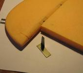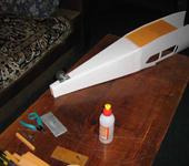 Ехаем дальше. Раскроил стенки фюзеляжа. Начал клеить с хвостовой части - вклеил пенопластовый клинышек с вырезанным в нём окном для облегчения.