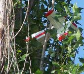 Бил, ремонтировал и снова летал. Чего ему (ЯКу !) только не пришлось терпеть: посадки в тростник и на тополь, полеты в ветер более 10 м/с, и это несмотря на немаленькую “морду” , киль и 70 груз за моторамой для правильной центровки. И латала же модель! Правда в конце концов носовая часть из-за поломок стала короткой( расстояние от плоскости вращения винта до передней кромки всего 135мм.), и полеты стали проблематичны.