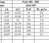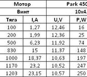 А вот что получилось на моторе Park450-1050Kv. на том же аккумуляторе и винте.