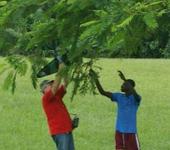 Ну вот, свершилось! Как в анекдоте - 3 секунды - полёт нормальный! Дерево на пути. Первая остановка. Аэродромная команда сняла самолет с дерева. Повреждений ноль. Проверка и опять в воздух. У жены запуск с рук не получался, пришлось приспособиться самому. Второй взлет, 10 - 15 сек. Приземление с минимальными потерями. И третий взлёт, 20 - 30 сек, самолет управляет мной. Судорожно пытаюсь стиками организовать какое то осмысленное движение. Все тренировки на симе - как не бывало. Адреналин прет, нецензурные выражения (слава Богу - местным не понять) жену отогнали на приличное растояние. Фотки получились не очень, сорри. Одним словом пара петель и … Все верно - нос в труху, но вся начинка и винт целые. Теперь или отрезать все по крыло, или новый фюз клеить. Но в воздух!!!