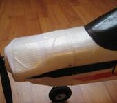 Я еще не летал(новый), но обклеил почти весь. Все кромки крыльев и рулежных поверхностей одним слоем бандажной ленты прозр. ЗМ(толстая), ей же капот забинтовал и передок около мотора, все крылья в один слой обычного скотча поверх наклеек, осталось обычным скотчем фюзеляж оклеить и все. После опыта с планерами и видя тягу винта 10*6 с б\к мотором 1000 об. могу сказать что это увеличение веса из-за скотча никак не скажется. Впрочем от самого страшного-морковки скотч не спасет.