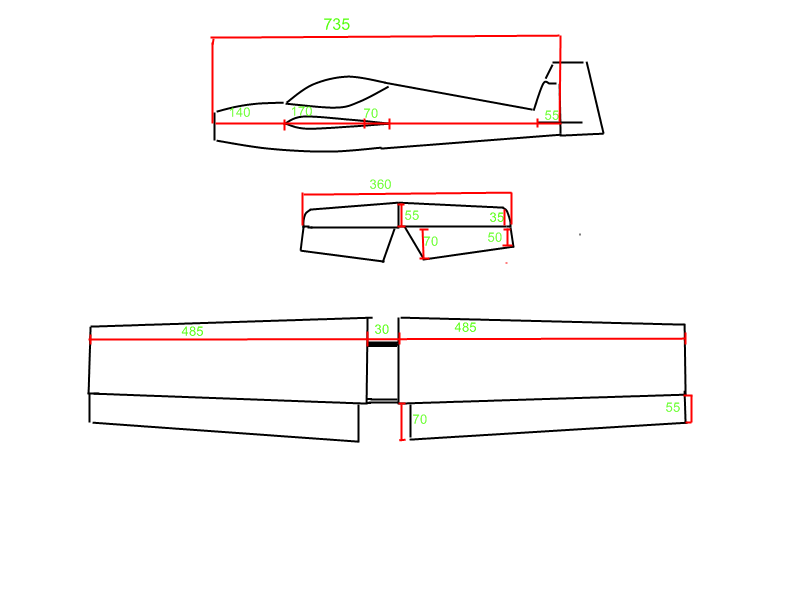 Модель чертилась на ватмане. Если хотите могу детально расписать все размеры такие как хорда крыла, размах, длина фюзеляжа.