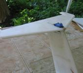 Да в принципе обшивка пенопластовая держит хорошо, оно именно в середине прогибается, где обшивки нет. элероны градусов на 15 отклоняются + двойные расходы, но их не пробовал. Вообще ходил её по воде покатать, да не сдержался- взлетел. Два полета пока, оба без эксессов, садил на травку.
