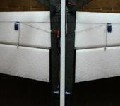 Также видно как стоят сервы элеронов. Никаких выжигателей не нужно - острый модельный нож и за 1 минуту получается дырка под серву. Режьте чуть меньше размера сервы чтобы внатяг вошла, обмазываете серву ухопором, вставляете и все!