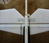 По полету - пока ничего конкретного сказать не могу. Был порывистый ветер да и холодно у нас сегодня. Модель при весе в 440гр. летает как пушинка. Инвертный полет без вмешательства руля высоты. Отклонения рулевых плоскостей от стандартных качалок серв HXT 900 для меня более, чем достаточно. В ветер модель показалась дерганной - но уже не стал настраивать двойные расходы. Понравилась эффективность элеронов. Модель висит легко.