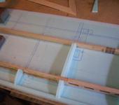 Верх будет зашиваться потолочкой 3.5мм. Так как консоль имеет длинну 1 метр, а лист потолочки 50см, на месте стыка листов будет стоять двойная по толщине нервюра. Перед зашивкой крыла так-же будут вклеены фанерные площадки для крепления серв, подкосов, кабанчиков. Элерон будет отрезаться уже от готовой консоли…
