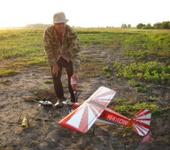 Сегодня при исполнении вертикальной бочки (вниз) на полном газу у самолета сложились крылья. Итог - оторванная морда (как красиво в землю входил - как сбитый истребитель!), крыло пополам (силовой лонжерон не выдержал), оторван и поврежден элерон. В принципе если бы не лонжерон, починился бы на месте… Полеты частично сняты на камеру, как солью с камеры - выложу. Сам момент сложения крыла, к сожалению, нет…