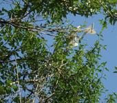 В первый же день аппарат дважды побывал на деревьях. С первого дерева был снят верёвкой с якорем. На втором висит до сих пор. Познакомился с хозяином участка, на котором растёт тот дуб. И ему тоже стало интересно. 😃