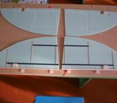 Постройка продвигается… медленно но верно. Колдую над фюзеляжем, перебирая различные варианты решения того или иного узла… Параллельно делаю хвостовое оперение. Пока вот половинки стабилизатора и РН вырисовываются. Будет они склеиваться из двух слоев теплона, кромки где петли крепятся из плотной бальзы, нервюрки из бамбуковых шампуриков. В точках крепления расчалок и кабанчиков площадки из переклея легкой фанерки. В половинках стабилизатора кроме всего этого вклеен лонжерон из карбоновой трубки 6мм… Стаб будет сьемный, надеваться на штыри и фиксироваться расчалками… но это я уже забегаю вперед 😃