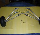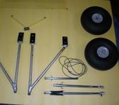 Зафигачил вот такие шасси 😁. Основные стойки из дюралевой трубки 10мм, на амортизаторах трубки от телескопической антенны. В качестве амортизирующего элемента выступает резиновый жгут, который работает на растяжение. В этой конструкции очень удобно и просто менять жесткость подвески, просто наматывая резиновый шнур по разному его натягивая.