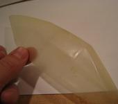 Вивак - толщиной 0.5мм, тоньше не нашёл. Нужно будет попробовать ещё и гипсовый болван в духовке подогреть слегка, чтоб вивак так быстро не охладжался на нём и продолжал тянуться “до последнего”. Болваны ставлю на постамент ~15мм, чтоб складки прошли ниже требуемой поверхности, но и это не всегда помогает. Со шпатлевкой мне понравилось: от штамповки к штамповке результат один и тот же. Вот ещё хочу попробовать сделать переплет по рецепту Валеры.