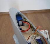 Батарея загружается через кабину в носовую часть, сидит там достаточно плотно. Оттого и вырез получился таким большим: с одной стороны батарею пихать, с другой - сервы регулировать.