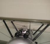 Взлетный вес Ньюпора 250г, после первых полетов на РН сделал элероны. Утяжелять его нельзя, могут сложиться крылья. Очень мощный мотор тоже ни к чему, все-таки полукопия. Летает легко, посадка с скоростью 2-3км/ч