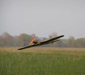 Облет прошел нормально, ИМХО летит хорошо, неплохо планирует. По элеронам конечно вяловато, но этого и ожидал, для полета “бомбовоза” достаточно.