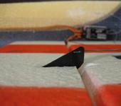 Карбоновыми прутами усилил РН крест на крест, и сделал подкосы на стабилизатор, тем самым компенсировал недостаточную жесткость хвостового оперения (основной недостаток этого самолета), вроде стал рулиться более остро и точно. Тоже отрезал элероны и вклеил их на майларовые петли. Моторама стоит металлическая опционная, спасибо Толику (Bimer). Покрасил аэрографон низ, полоски, как у оригинала, а то было все белое. Чтобы не терлась хвостовая пятка, вживил в нее небольшое колесико. Родные кабанчики из комплекта никакие, вырезал свои из листового карбона толщиной 1мм