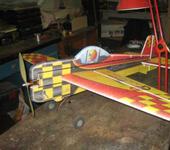 Карбоновыми прутами усилил РН крест на крест, и сделал подкосы на стабилизатор, тем самым компенсировал недостаточную жесткость хвостового оперения (основной недостаток этого самолета), вроде стал рулиться более остро и точно. Тоже отрезал элероны и вклеил их на майларовые петли. Моторама стоит металлическая опционная, спасибо Толику (Bimer). Покрасил аэрографон низ, полоски, как у оригинала, а то было все белое. Чтобы не терлась хвостовая пятка, вживил в нее небольшое колесико. Родные кабанчики из комплекта никакие, вырезал свои из листового карбона толщиной 1мм