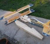 Так что решил сделать объёмный фюзеляж из потолочки. Клеить фюзеляж буду по деревянному болвану, для меня кажется, это самый постой способ, чтобы получилось ровно, болван сделал из двух досок 50Х150мм… Потолочку планирую клеить в два слоя, на болване, капот на двигатель и фонарь кабины сделать из бутылки.