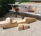 Подложка в два слоя по всему фюзеляжу. Фюзеляж получился достаточно жестким без использования шпангоутов и силового каркаса, только в месте крепления стойки под верхнее крыло пришлось вклеить два полушпангоута из пенопласта, в модельной (авиационной) терминологии я тоже профан, так что если не так выразился извините.